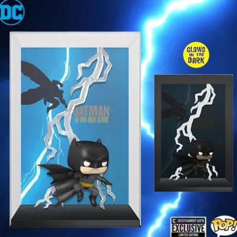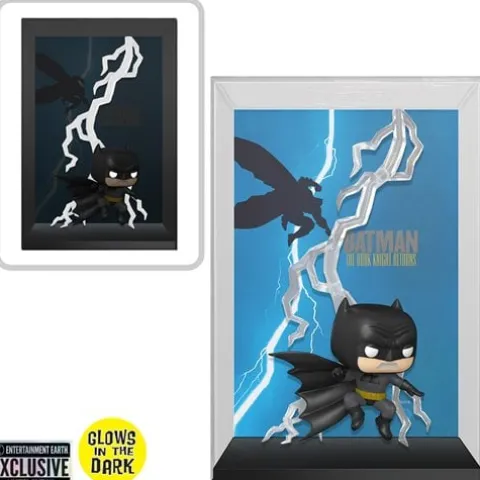 Entertainment Earth Exclusive! Face the crimes that loom over Gotham City with the Dark Knight! Based on DC’s 1986 Batman: The Dark Knight Returns #1 comic, Batman poses for his next move against a streak of lightning and the iconic comic cover as the backdrop. Dim the lights and watch the Dark Knight’s eyes and the lightning wave glow-in-the dark! This Batman: The Dark Knight Returns Glow-in-the Dark Funko Pop! Comic Cover Figure #16 – Entertainment Earth Exclusive measures approximately 11-inches tall x 7-inches wide x 3 1/2-inches deep and comes packaged in a window-display box. This is a terrific centerpiece for any comic book collection or the desk of a fan of the Caped Crusader, so order yours while supplies last!