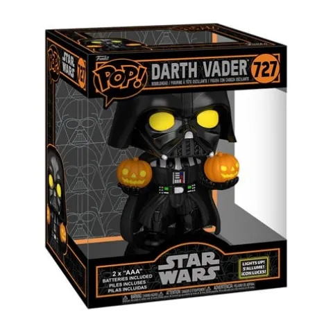 This Halloween Light-Up Super Funko Pop! Vinyl Figure measures approximately 6-inches tall and comes packaged in a window display box.