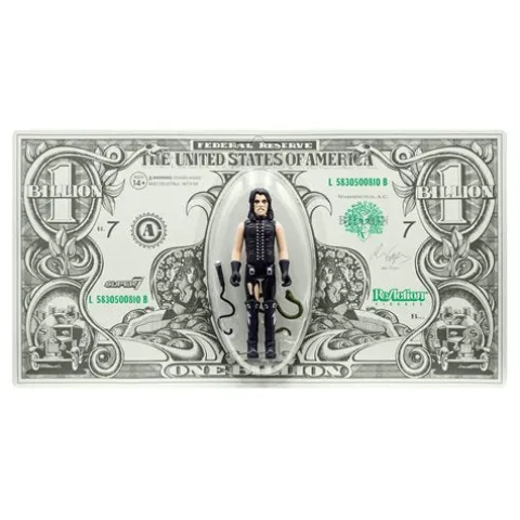 Hello! Hooray! Super7 is honored to add rock music legend Alice Cooper to the ReAction Figures World! This 3 3/4-inch plastic release is packaged on a special cardback inspired by the legendary 1973 Billion Dollar Babies album. The Billion Dollar Babies Alice ReAction Figure features metallic paint accents and comes with a microphone and his infamous pet snake as accessories. Hey! I think we’ve got a live one. Ages 14 and over