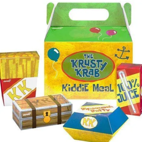 Are ya ready, kids?! The Krusty Krab meal is now ready to order from Super7! Featuring All your favorite Bikini Bottom residents, SpongeBob, Patrick, Squidward, and even Mr. Krabs! Packaged in premium fast food kid’s meal style packaging, the Krusty Krab Meal, includes free adjustable Krusty Krab paper cap. But no free refills!