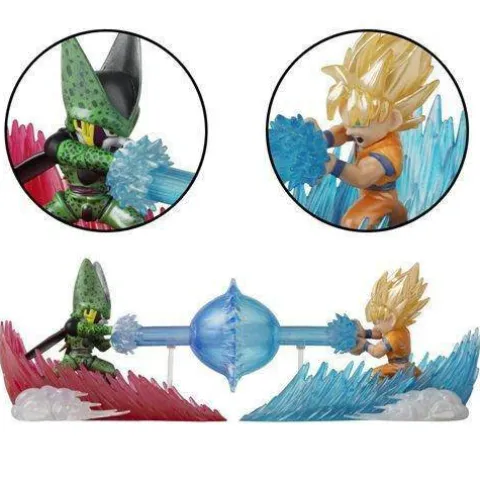 A must have For fans of the Dragon Ball anime series! The Dragon Ball Final Blast Super Saiyan Goku and Cell Final Form Mini-Figure 2-Pack – Event Exclusive measures about 1 1/2-inches tall.
