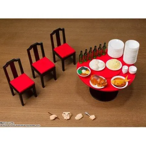 Re-create dynamic dining scenes with Son Goku’s Hara Hachibunme restaurant set! Designed for the S.H.Figuarts series, it includes a table, chairs, and plenty of food dishes and drinks — an instant party, ready for your tabletop or display! Chopsticks and forks are included, too, expanding your posing possibilities! The Dragon Ball Z Son Goku’s Harahachibunme Set S.H.Figuarts includes background sheet, furniture set, food set, and tableware set.