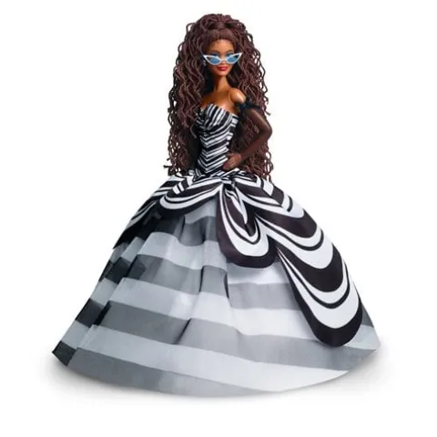 - Barbie celebrates her 65th anniversary with a beautiful collectible doll that reimagines classic elements of the original Barbie doll through a lens of modern elegance.