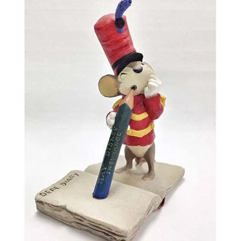 Timothy Mouse is both streetwise and soft-hearted in the classic, Dumbo. The pose is from an abandoned segment entitled “A Mouse’s Diary” and the skillfully crafted, hand-painted sculpture originates from a late 1930’s maquette in the company collection.