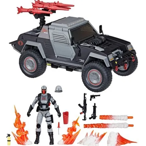 G.I. Joe is a highly skilled, on-demand, special operations force of men and women from around the globe tasked with defending the world from Cobra, a ruthless criminal organization bent on total domination. The brave members of G.I. Joe are prepared to seek out Cobra in any environment on the planet. From hostile jungles to ice-clad arctic peaks…wherever there’s trouble, G.I. Joe is there. New to the G.I. Joe Classified Series line, Cobra Night Attack 4-WD Stinger & Driver comes ready for adventure, with multiple points of articulation for high poseability. This Driver figure contains 8 character-inspired accessory pieces including helmet, knife, removable sheath, and 3 weapon accessories. The Cobra Night Attack 4-WD Stinger comes packed with features including functioning wheels, suspension, armored-plated doors and roof, rear bumper plate with foot pegs, ram bar, dashboard display details, side mirrors, shovel, fire extinguisher 4 missiles, and 6 blast effect accessories.
