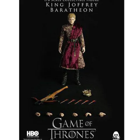 Threezero presents Game of Thrones’ Joffrey Baratheon as an articulated 1/6 scale figure. Joffrey stands 11.50 inches tall and features a highly-accurate realistic likeness to the character in the television series. He comes fully dressed in custom-tailored clothing and includes several interchangeable accessories such as his crossbow with arrows.
