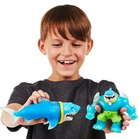Your favorite stretchy, squishy heroes have returned in their Primal Form and are ready to be powered up by you! Crush their Core to activate their “Goo-formation”! Watch as the Goo inside their bodies changes before your eyes to release their inner power! Thrash and Rock Jaw are back in their Primal form of a shark and crocodile!
