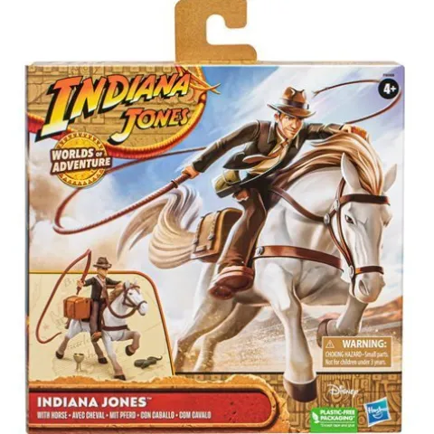 Gallop into heart-stopping action with the Indiana Jones Worlds of Adventure Indiana Jones with Horse 2-pack! This 2 1/2-inch-scale Indiana Jones action figure features fully poseable arms, legs, and head, as well as design and detail inspired by the Indiana Jones entertainment. Kids ages 4 and up will love re-creating favorite Indiana Jones moments with this Indiana Jones gift set, featuring snake, Holy Grail, satchel, and whip accessories, as well as a repositionable saddlebag! If adventure has a name, it must be Indiana Jones!
