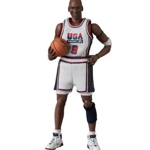 From Medicom. Led by Michael Jordan, the “Dream Team” (ie., the 1992 Team USA Olympic Basketball Team) achieved Olympic gold at the 1992 Olympic games in Barcelona. This MAF EX figure of Jordan stands 6 1/4″ tall, comes with a basketball, and depicts the basketball legend in a fabric Team USA uniform.