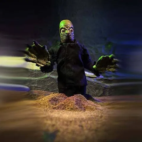 Traveling through the sands of the Megoverse The Mummy has returned with the new 8” classically styled Mego action figure! The Mummy is outfitted with screen-accurate details and sculpting as seen in the 1932 film. Do you dare read the Scroll of Thoth aloud??