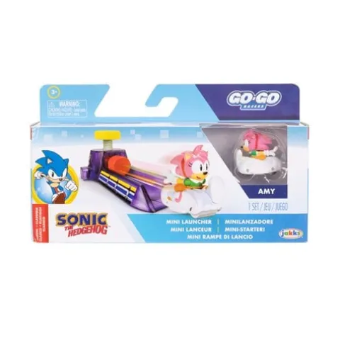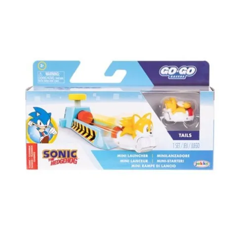 Sonic is faster than the speed of sound – stopping crime, saving the world, and looking cool while he does it. Introducing Sonic Go-Go Racers! Use the mini launcher to send Sonic speeding towards the included target. Collect them all to connect and race against his friends Tails and Amy for epic adventures! Tails is your trusty, tech-savvy sidekick – always ready to invent, explore, and have fun doing it. Enter the world of Tails Go-Go Racers! With the mini launcher, propel Tails towards the included target. Collect them all to connect and race against Sonic and Amy for exciting challenges and high-speed excitement!