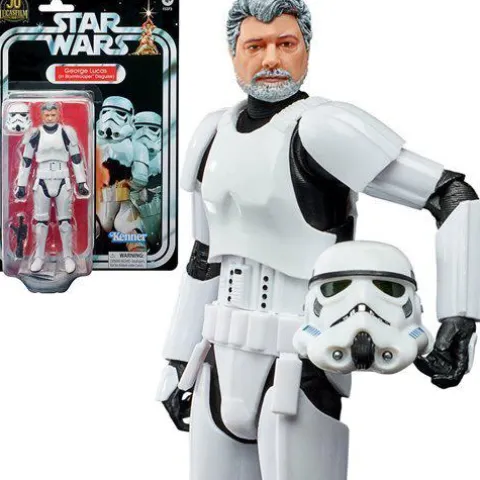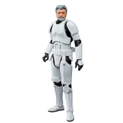 The creator of Star Wars! Fans and collectors can bring this premium George Lucas (In Stormtrooper Disguise) action figure home to display on their shelves as part of their Star Wars collection. The Star Wars The Black Series George Lucas (In Stormtrooper Disguise) 6-Inch Action Figure makes use of the updated 2020 The Black Series Imperial Stormtrooper body and puts George Lucas under the helmet! Plastic action figure has removable helmet and blaster pistol. Comes packaged on a retro-style cardback, similar to the 40th Anniversary Collection figures and some of the 50th Anniversary of Lucasfilm exclusive releases. Ages 4 and up.