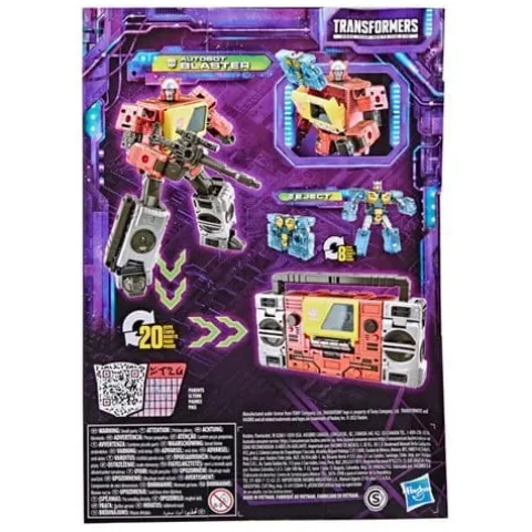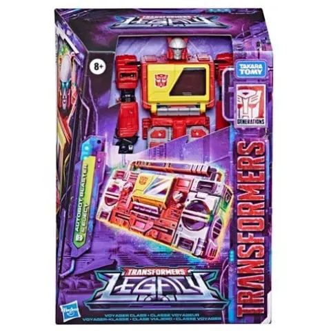 Transformers Generations Legacy Voyager Blaster stands at 7-inches and is G1-inspired. The Autobot Blaster figure converts into classic G1-inspired radio mode in 20 steps and comes with a blaster accessory. Eject figure converts from robot to cassette mode in 8 steps and fits inside the Autobot Blaster figure’s chest. ages 8 and up.