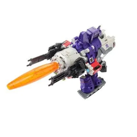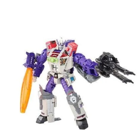 Behold, Galvatron – in retro colors! This G1-inspired toy converts into cannon mode in 33 steps and comes with Particle Beam cannon and 2 side cannon accessories that attach in both modes. But what you’re going to love is that it comes in the grey colors of the original 1980s toy! The Matrix of Leadership accessory can hang around the Galvatron figure’s neck. Transforms in 33 steps. Intimidates your Sweeps, possibly your Unicron.