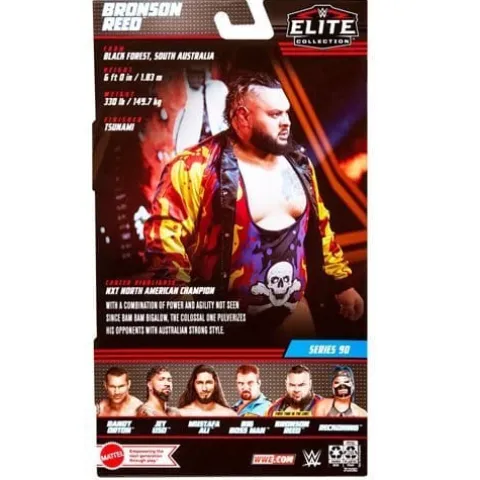 Capture the blowout action of WWE Superstars with the WWE Elite Collection Series 90 Bronson Reed Action Figure! Featuring one of WWE’s biggest personalities and champions, this bold and colorful figure is approximately 6-inches tall and comes ready to wreak havoc right out of the box! Figure has deluxe articulation for multiple ways to pose and play, and True FX enhanced facial detailing for life-like authenticity. The figure showcases Bronson Reed with iconic ring gear and comes with an entrance jacket featuring flames. Get all the WWE Elite Collection figures and let the collecting and battles begin! Ages 8 and up.